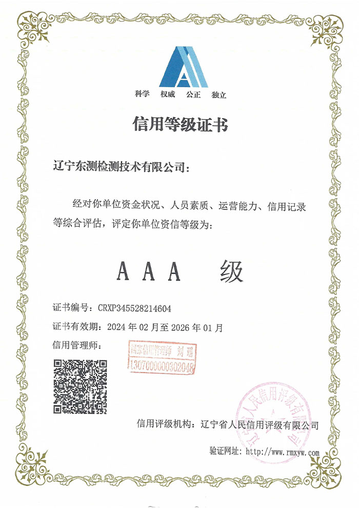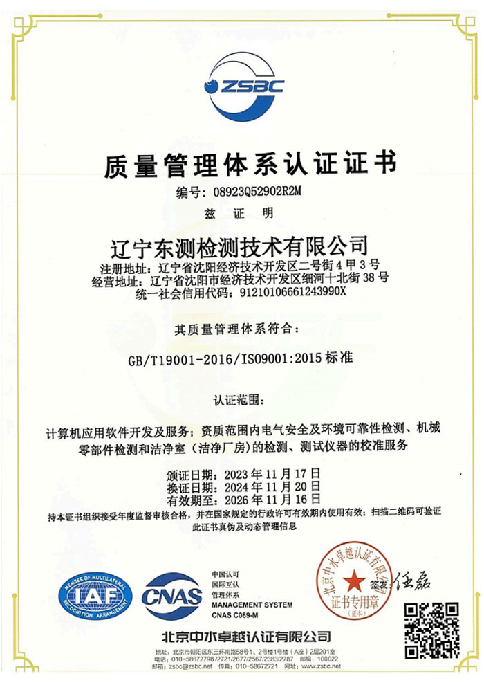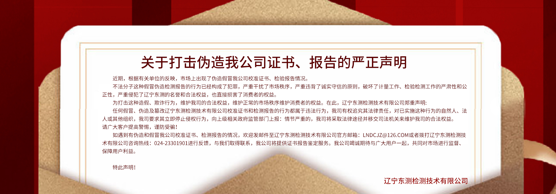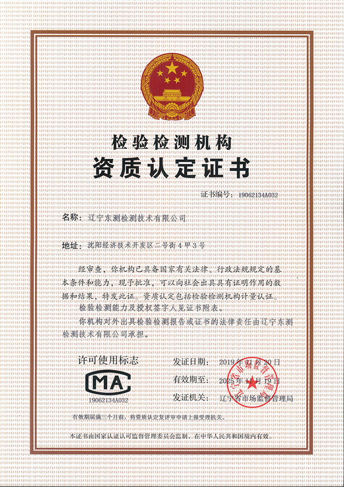 遼寧東測檢測技術(shù)有限公司成立于2007年6月21日,專注于為客戶提供計量、檢測以及技術(shù)咨詢與培訓的第三方計量檢測機構(gòu)。遼寧東測檢測技術(shù)有限公司通過了中國合格評定國家認可委員會認可(CNAS),獲得檢驗檢測機構(gòu)資質(zhì)認定(CMA),憑借著高效的服務網(wǎng)絡、雄厚的技術(shù)實力以及全面的業(yè)務范圍,本著“科學、公正、準確、真誠”的質(zhì)量方針,為社會提供優(yōu)質(zhì)計量檢測服務,打造國內(nèi)具有價值的計量技術(shù)機構(gòu)。